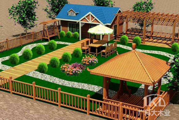使用防腐木打造整體木花園裝飾效果圖片
